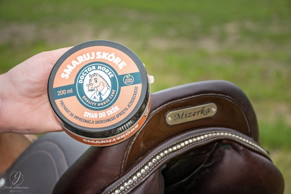 Pred aplikáciou kožu očistite a osušte, odporúčame použiť náš prípravok Czyścioch – čistič a ošetrujúci prípravok na kožené jazdecké vybavenie.
